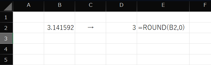 ROUND関数は数値の中の指定した桁数以下を四捨五入して表示する関数。